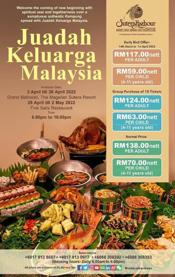 RM150 nett per adult from now until 1 April 2022 only. Patrons can enjoy 25 off for early bird bookings made before 26 March 2022. For reservations call The Courtyard at 603 2117 2821 WhatsApp 6017 206 8805 or email email protected.